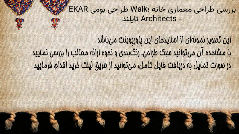 پاورپوینت کامل بررسی طراحی معماری خانه Walk؛ طراحی بومی EKAR Architects – تایلند