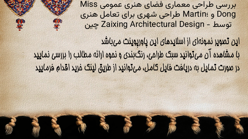 پاورپوینت کامل بررسی طراحی معماری فضای هنری عمومی Miss Dong و Martin؛ طراحی شهری برای تعامل هنری توسط Zaixing Architectural Design – چین