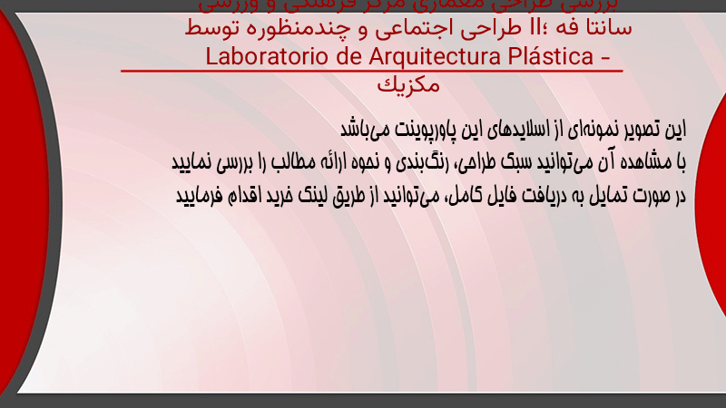 پاورپوینت کامل بررسی طراحی معماری مرکز فرهنگی و ورزشی سانتا فه II؛ طراحی اجتماعی و چندمنظوره توسط Laboratorio de Arquitectura Plástica – مکزیک