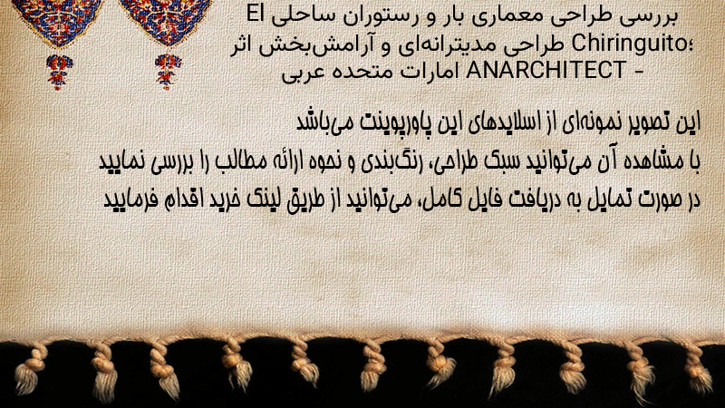 پاورپوینت کامل بررسی طراحی معماری بار و رستوران ساحلی El Chiringuito؛ طراحی مدیترانهای و آرامشبخش اثر ANARCHITECT – امارات متحده عربی