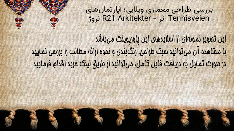 پاورپوینت کامل بررسی طراحی معماری ویلایی؛ آپارتمانهای Tennisveien اثر R21 Arkitekter – نروژ