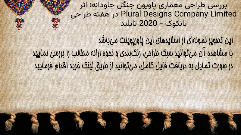 پاورپوینت کامل بررسی طراحی معماری پاویون جنگل جاودانه؛ اثر Plural Designs Company Limited در هفته طراحی بانکوک ۲۰۲۰ – تایلند