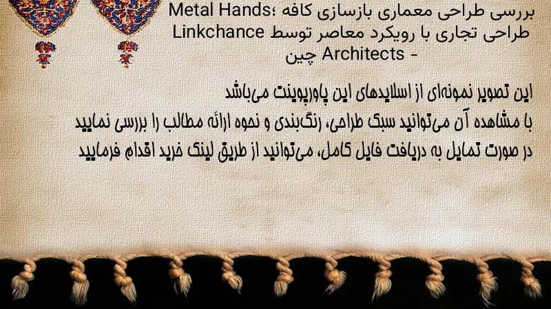 پاورپوینت کامل بررسی طراحی معماری بازسازی کافه Metal Hands؛ طراحی تجاری با رویکرد معاصر توسط Linkchance Architects – چین