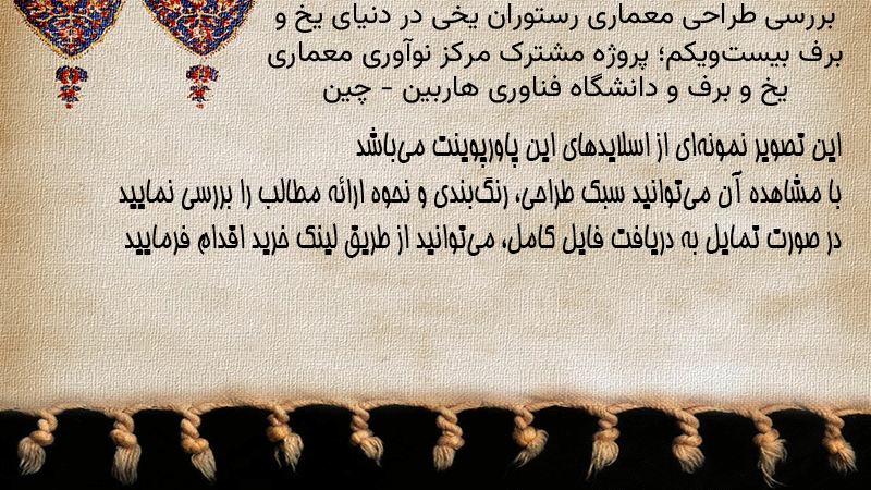 پاورپوینت کامل بررسی طراحی معماری رستوران یخی در دنیای یخ و برف بیستویکم؛ پروژه مشترک مرکز نوآوری معماری یخ و برف و دانشگاه فناوری هاربین – چین