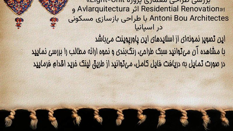 پاورپوینت کامل بررسی طراحی معماری پروژه «Eight-Unit Residential Renovation»؛ اثر Avlarquitectura و Antoni Bou Architectes با طراحی بازسازی مسکونی در اسپانیا