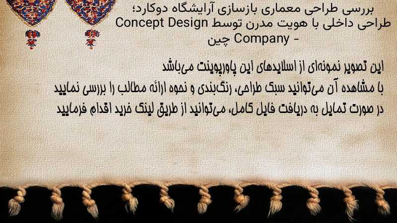 پاورپوینت کامل بررسی طراحی معماری بازسازی آرایشگاه دوکارد؛ طراحی داخلی با هویت مدرن توسط Concept Design Company – چین