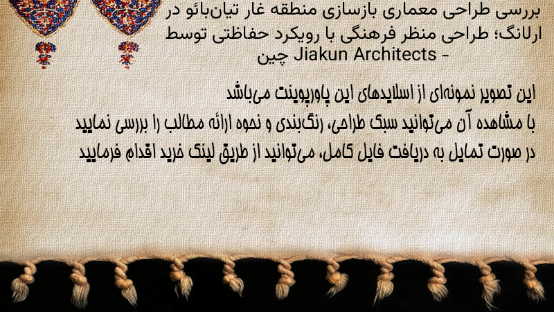 پاورپوینت کامل بررسی طراحی معماری بازسازی منطقه غار تیانبائو در ارلانگ؛ طراحی منظر فرهنگی با رویکرد حفاظتی توسط Jiakun Architects – چین