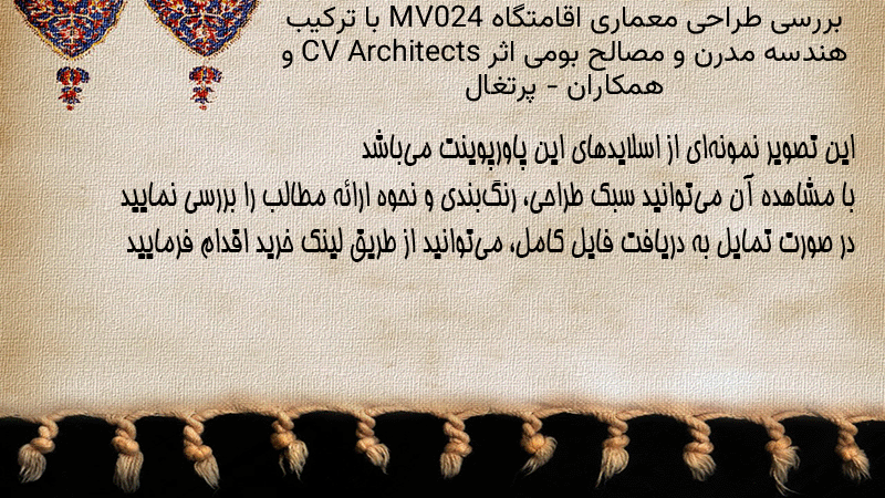 پاورپوینت کامل بررسی طراحی معماری اقامتگاه MV024 با ترکیب هندسه مدرن و مصالح بومی اثر CV Architects و همکاران – پرتغال
