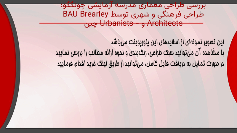 پاورپوینت کامل بررسی طراحی معماری مدرسه آزمایشی چونگگو؛ طراحی فرهنگی و شهری توسط BAU Brearley Architects و Urbanists – چین