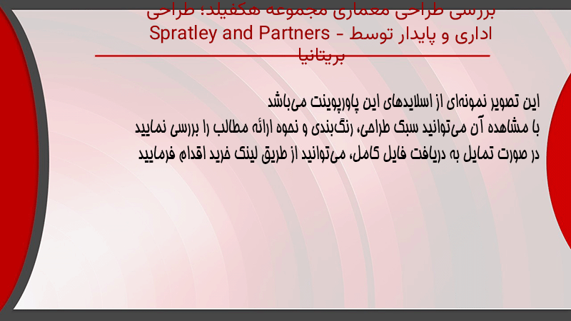 پاورپوینت کامل بررسی طراحی معماری مجموعه هکفیلد؛ طراحی اداری و پایدار توسط Spratley and Partners – بریتانیا