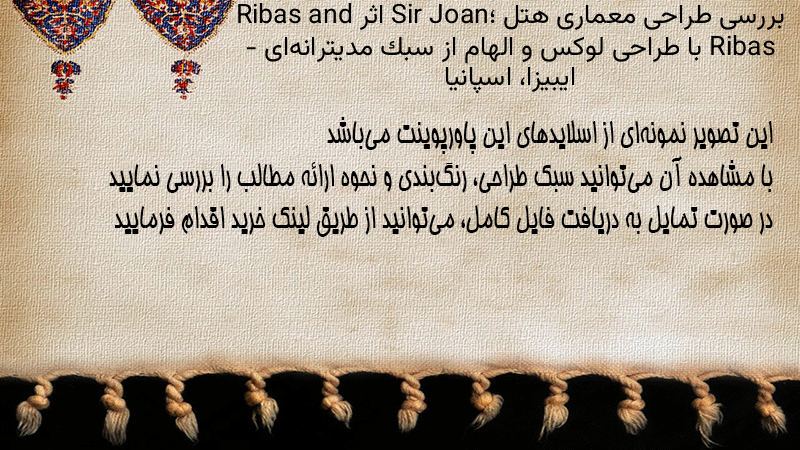 پاورپوینت کامل بررسی طراحی معماری هتل Sir Joan؛ اثر Ribas and Ribas با طراحی لوکس و الهام از سبک مدیترانهای – ایبیزا، اسپانیا