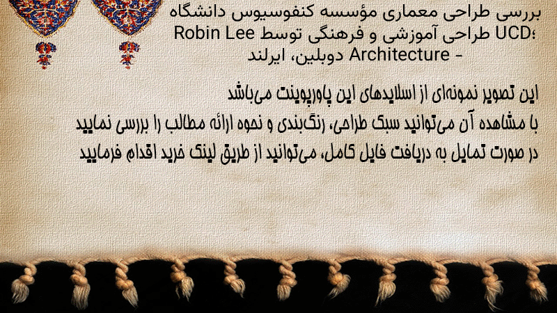 پاورپوینت کامل بررسی طراحی معماری مؤسسه کنفوسیوس دانشگاه UCD؛ طراحی آموزشی و فرهنگی توسط Robin Lee Architecture – دوبلین، ایرلند