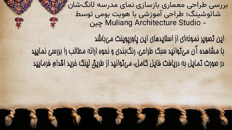 پاورپوینت کامل بررسی طراحی معماری بازسازی نمای مدرسه لانگشان شائوشینگ؛ طراحی آموزشی با هویت بومی توسط Muliang Architecture Studio – چین