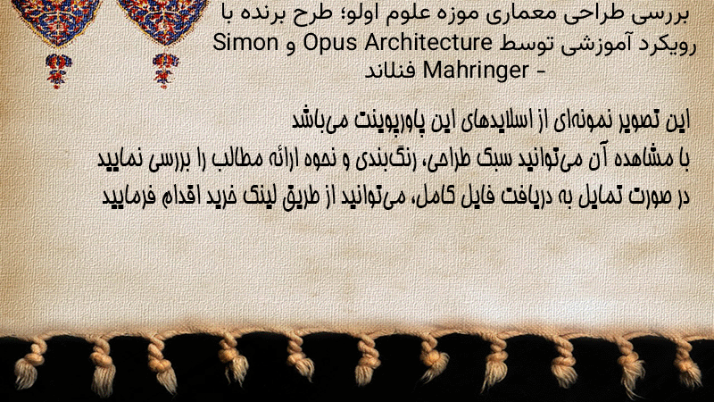پاورپوینت کامل بررسی طراحی معماری موزه علوم اولو؛ طرح برنده با رویکرد آموزشی توسط Opus Architecture و Simon Mahringer – فنلاند
