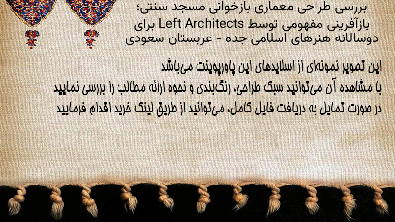 پاورپوینت کامل بررسی طراحی معماری بازخوانی مسجد سنتی؛ بازآفرینی مفهومی توسط Left Architects برای دوسالانه هنرهای اسلامی جده – عربستان سعودی