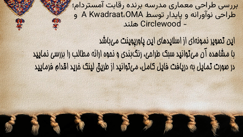 پاورپوینت کامل بررسی طراحی معماری مدرسه برنده رقابت آمستردام؛ طراحی نوآورانه و پایدار توسط OMA، A Kwadraat و Circlewood – هلند