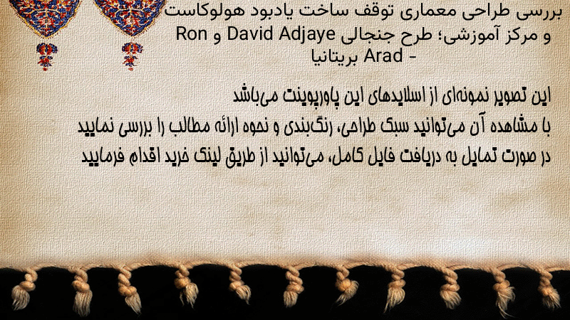 پاورپوینت کامل بررسی طراحی معماری توقف ساخت یادبود هولوکاست و مرکز آموزشی؛ طرح جنجالی David Adjaye و Ron Arad – بریتانیا