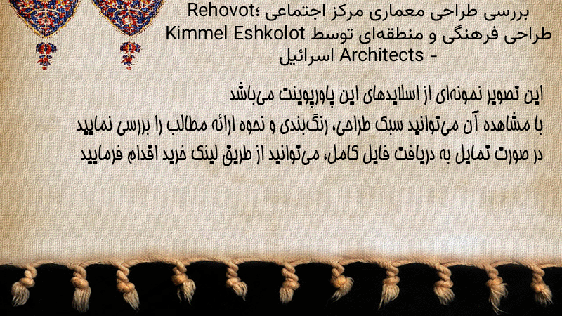 پاورپوینت کامل بررسی طراحی معماری مرکز اجتماعی Rehovot؛ طراحی فرهنگی و منطقهای توسط Kimmel Eshkolot Architects – اسرائیل