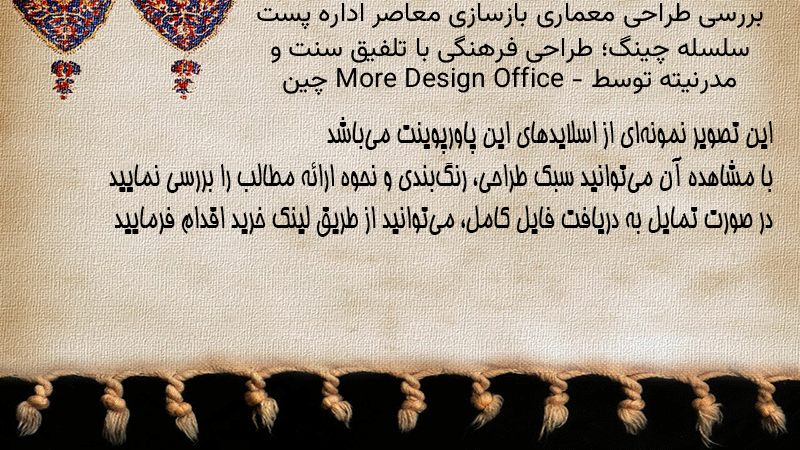 پاورپوینت کامل بررسی طراحی معماری بازسازی معاصر اداره پست سلسله چینگ؛ طراحی فرهنگی با تلفیق سنت و مدرنیته توسط More Design Office – چین
