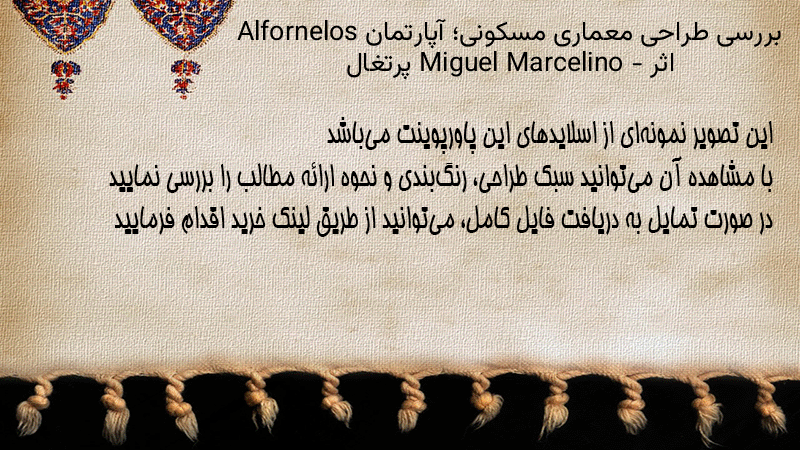 پاورپوینت کامل بررسی طراحی معماری مسکونی؛ آپارتمان Alfornelos اثر Miguel Marcelino – پرتغال