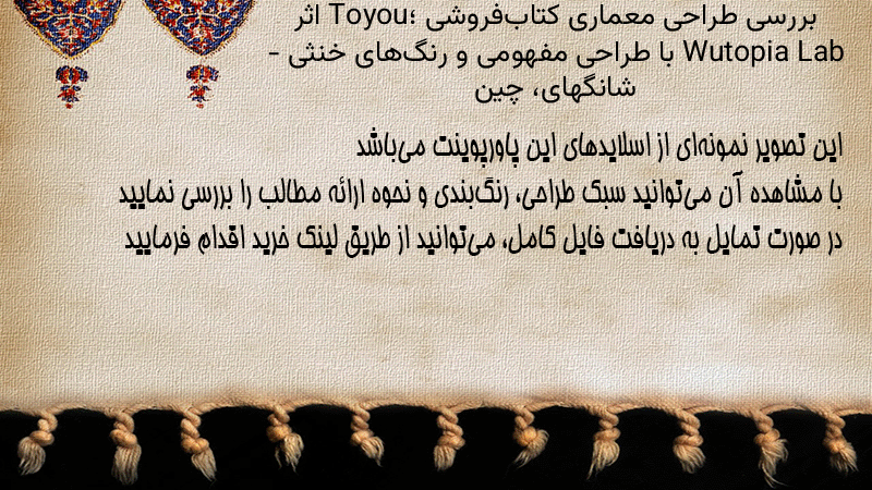 پاورپوینت کامل بررسی طراحی معماری کتابفروشی Toyou؛ اثر Wutopia Lab با طراحی مفهومی و رنگهای خنثی – شانگهای، چین