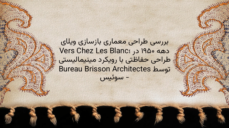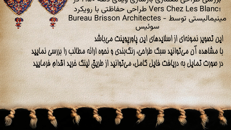 پاورپوینت کامل بررسی طراحی معماری بازسازی ویلای دهه ۱۹۵۰ در Vers Chez Les Blanc؛ طراحی حفاظتی با رویکرد مینیمالیستی توسط Bureau Brisson Architectes – سوئیس