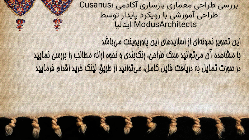 پاورپوینت کامل بررسی طراحی معماری بازسازی آکادمی Cusanus؛ طراحی آموزشی با رویکرد پایدار توسط ModusArchitects – ایتالیا