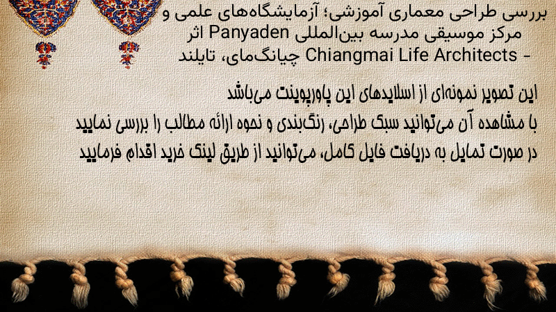 پاورپوینت کامل بررسی طراحی معماری آموزشی؛ آزمایشگاههای علمی و مرکز موسیقی مدرسه بینالمللی Panyaden اثر Chiangmai Life Architects – چیانگمای، تایلند