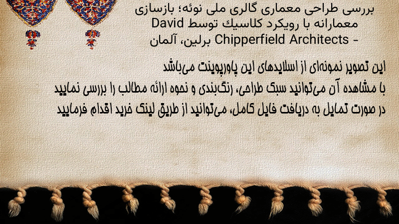 پاورپوینت کامل بررسی طراحی معماری گالری ملی نوئه؛ بازسازی معمارانه با رویکرد کلاسیک توسط David Chipperfield Architects – برلین، آلمان