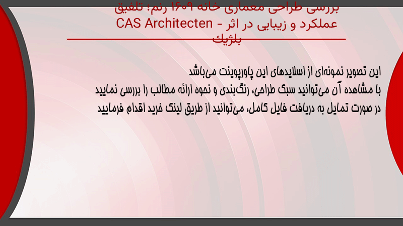 پاورپوینت کامل بررسی طراحی معماری خانه ۱۶۰۹ رنم؛ تلفیق عملکرد و زیبایی در اثر CAS Architecten – بلژیک