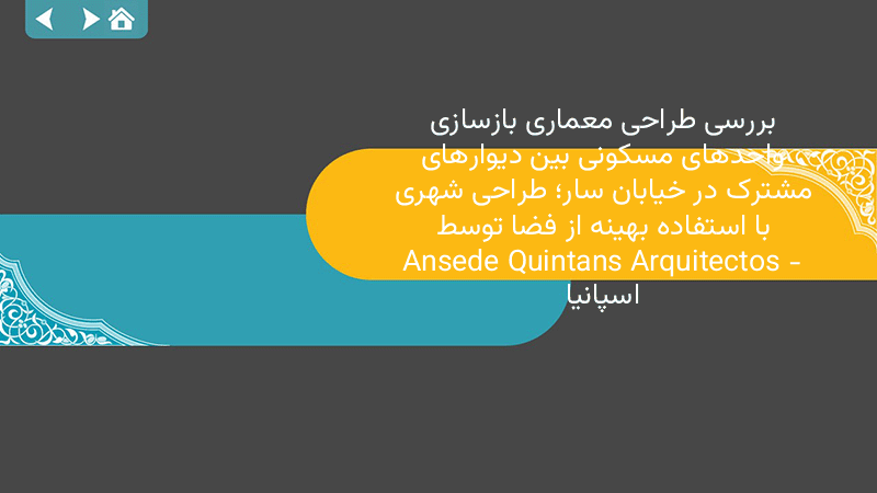 پاورپوینت کامل بررسی طراحی معماری بازسازی واحدهای مسکونی بین دیوارهای مشترک در خیابان سار؛ طراحی شهری با استفاده بهینه از فضا توسط Ansede Quintans Arquitectos – اسپانیا