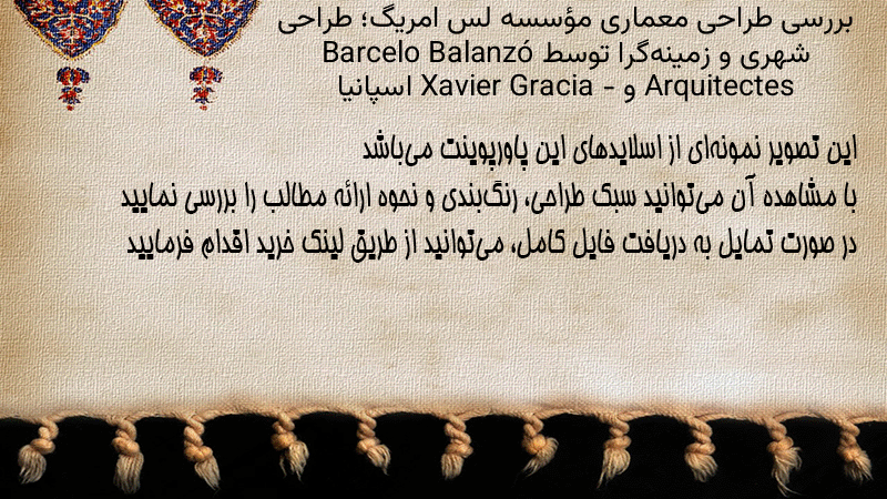 پاورپوینت کامل بررسی طراحی معماری مؤسسه لس امریگ؛ طراحی شهری و زمینهگرا توسط Barcelo Balanzó Arquitectes و Xavier Gracia – اسپانیا