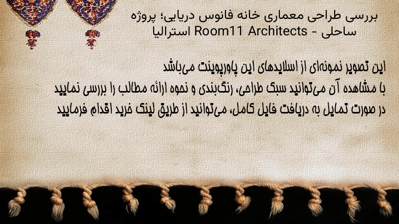 پاورپوینت کامل بررسی طراحی معماری خانه فانوس دریایی؛ پروژه ساحلی Room11 Architects – استرالیا