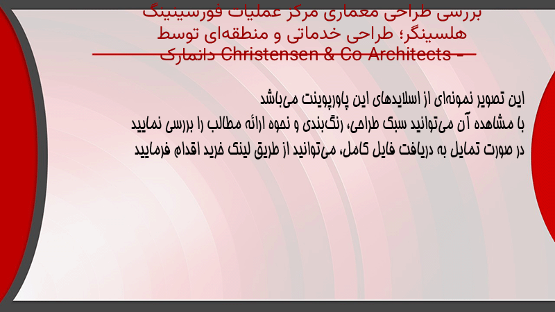پاورپوینت کامل بررسی طراحی معماری مرکز عملیات فورسینینگ هلسینگر؛ طراحی خدماتی و منطقهای توسط Christensen & Co Architects – دانمارک