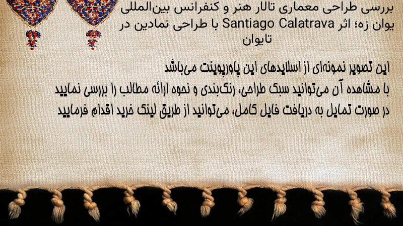پاورپوینت کامل بررسی طراحی معماری تالار هنر و کنفرانس بینالمللی یوان زه؛ اثر Santiago Calatrava با طراحی نمادین در تایوان