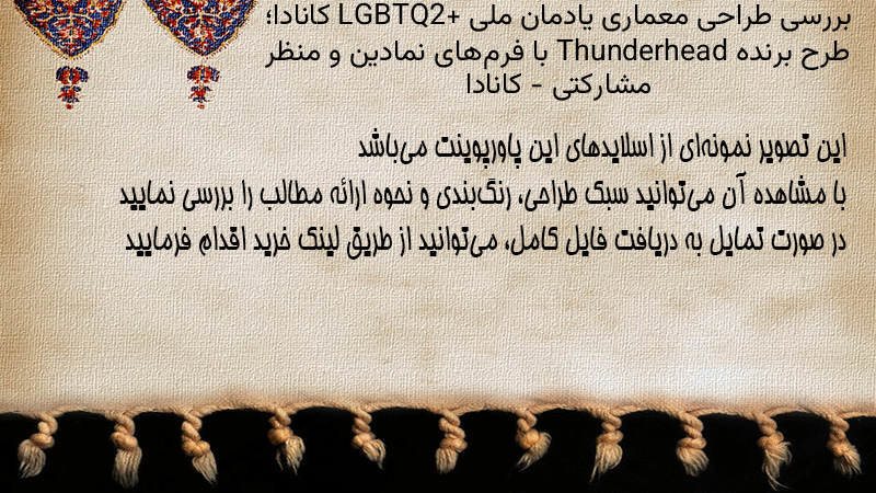 پاورپوینت کامل بررسی طراحی معماری یادمان ملی LGBTQ2+ کانادا؛ طرح برنده Thunderhead با فرمهای نمادین و منظر مشارکتی – کانادا