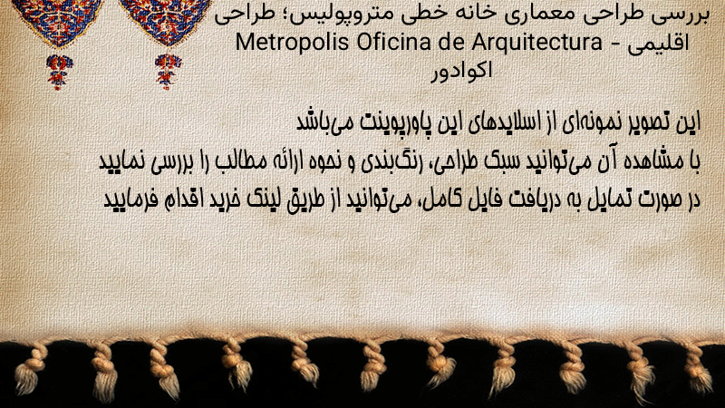 پاورپوینت کامل بررسی طراحی معماری خانه خطی متروپولیس؛ طراحی اقلیمی Metropolis Oficina de Arquitectura – اکوادور