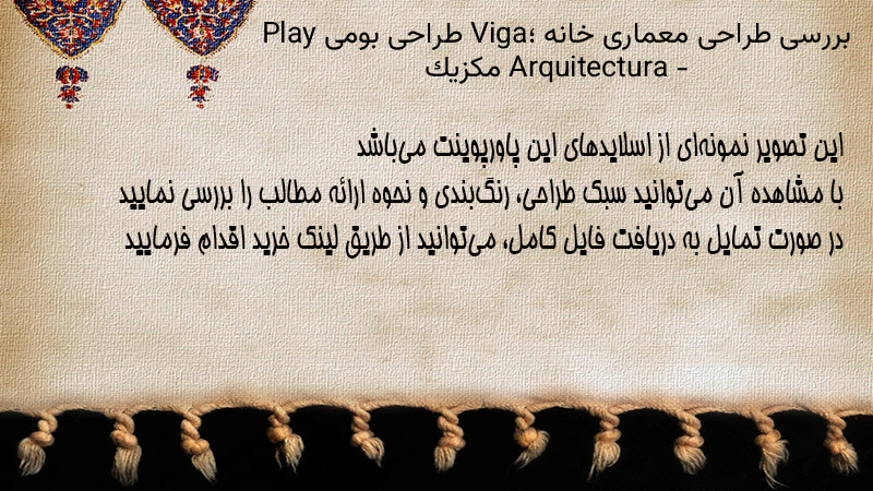 پاورپوینت کامل بررسی طراحی معماری خانه Viga؛ طراحی بومی Play Arquitectura – مکزیک