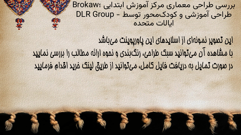 پاورپوینت کامل بررسی طراحی معماری مرکز آموزش ابتدایی Brokaw؛ طراحی آموزشی و کودکمحور توسط DLR Group – ایالات متحده