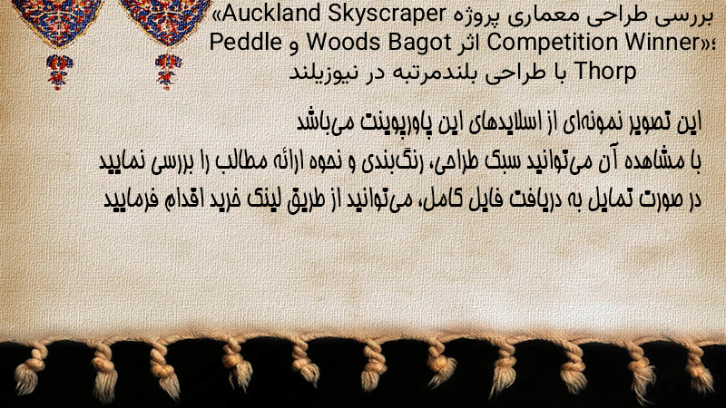 پاورپوینت کامل بررسی طراحی معماری پروژه «Auckland Skyscraper Competition Winner»؛ اثر Woods Bagot و Peddle Thorp با طراحی بلندمرتبه در نیوزیلند
