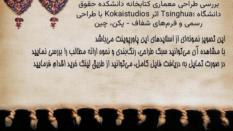 پاورپوینت کامل بررسی طراحی معماری کتابخانه دانشکده حقوق دانشگاه Tsinghua؛ اثر Kokaistudios با طراحی رسمی و فرمهای شفاف – پکن، چین