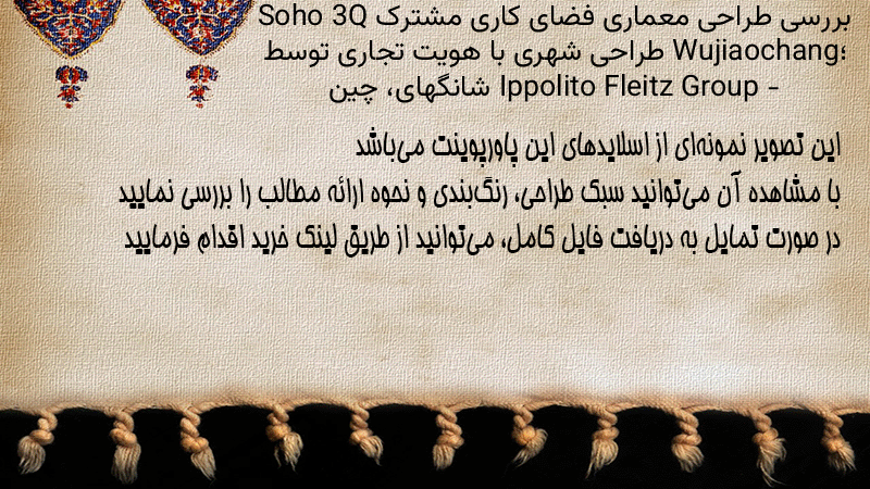 پاورپوینت کامل بررسی طراحی معماری فضای کاری مشترک Soho 3Q Wujiaochang؛ طراحی شهری با هویت تجاری توسط Ippolito Fleitz Group – شانگهای، چین