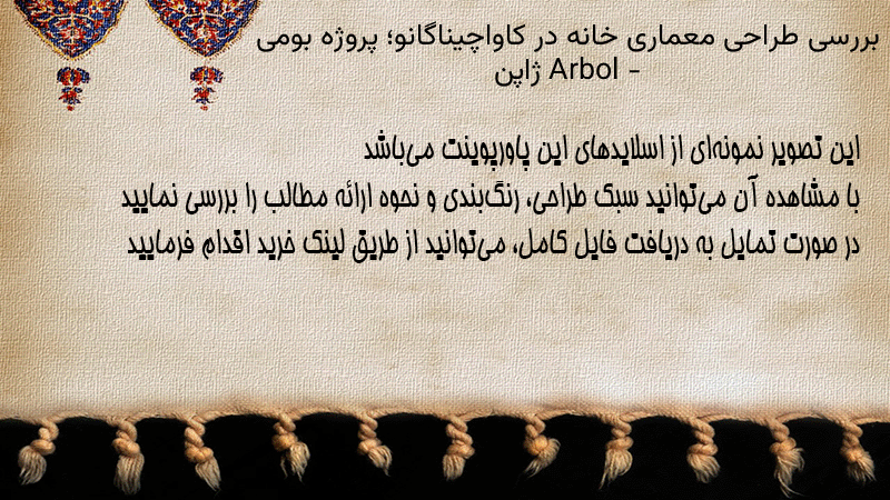 پاورپوینت کامل بررسی طراحی معماری خانه در کاواچیناگانو؛ پروژه بومی Arbol – ژاپن