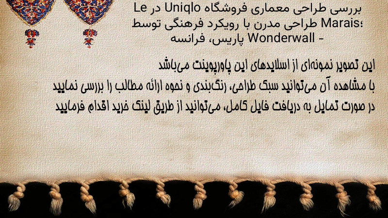 پاورپوینت کامل بررسی طراحی معماری فروشگاه Uniqlo در Le Marais؛ طراحی مدرن با رویکرد فرهنگی توسط Wonderwall – پاریس، فرانسه