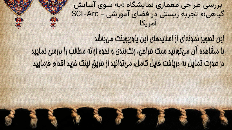 پاورپوینت کامل بررسی طراحی معماری نمایشگاه «به سوی آسایش گیاهی»؛ تجربه زیستی در فضای آموزشی SCI-Arc – آمریکا