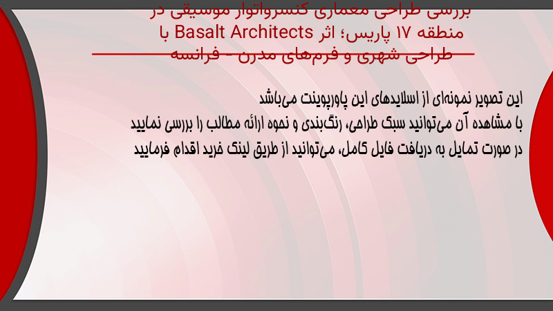 پاورپوینت کامل بررسی طراحی معماری کنسرواتوار موسیقی در منطقه ۱۷ پاریس؛ اثر Basalt Architects با طراحی شهری و فرمهای مدرن – فرانسه