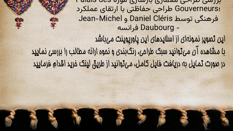 پاورپوینت کامل بررسی طراحی معماری بازسازی موزه Palais des Gouverneurs؛ طراحی حفاظتی با ارتقای عملکرد فرهنگی توسط Daniel Cléris و Jean-Michel Daubourg – فرانسه