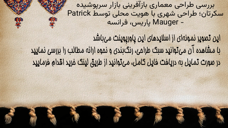 پاورپوینت کامل بررسی طراحی معماری بازآفرینی بازار سرپوشیده سکرتان؛ طراحی شهری با هویت محلی توسط Patrick Mauger – پاریس، فرانسه