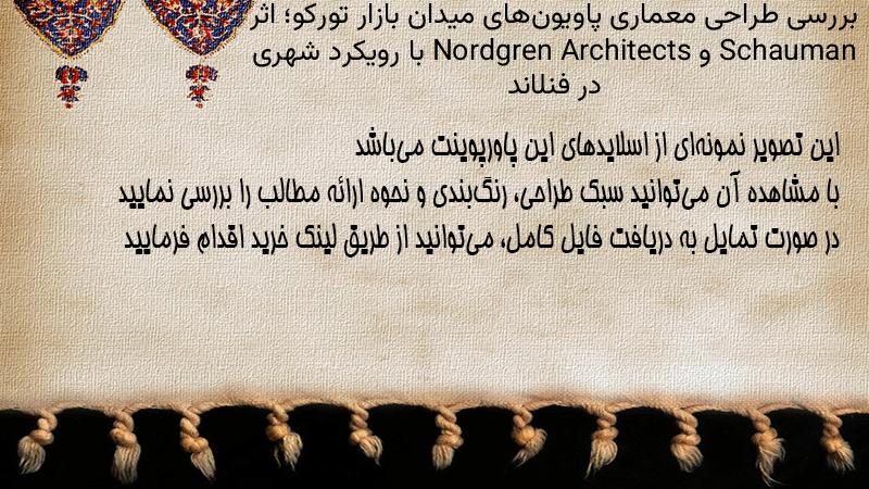 پاورپوینت کامل بررسی طراحی معماری پاویونهای میدان بازار تورکو؛ اثر Schauman و Nordgren Architects با رویکرد شهری در فنلاند