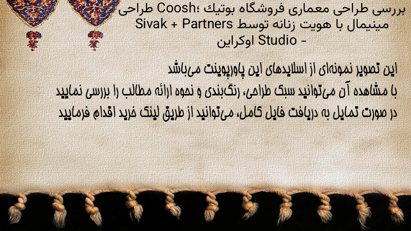 پاورپوینت کامل بررسی طراحی معماری فروشگاه بوتیک Coosh؛ طراحی مینیمال با هویت زنانه توسط Sivak + Partners Studio – اوکراین